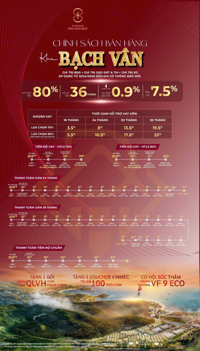 Vinhomes Làng Vân (Vinhomes Hải Vân Bay) là siêu đại đô thị nghỉ dưỡng quy mô 512ha tại Đà Nẵng, sở hữu vị trí đắc địa tại phường Hòa Hiệp Bắc, quận Liên Chiểu, nằm dưới chân Đèo Hải Vân hùng vĩ và hướng ra vịnh Nam Chơn thơ mộng. Đặc biệt, dự án này được chủ đầu tư Vingroup đầu tư tổng vốn lên đến 44.000 tỷ đồng (~2 tỷ USD), đồng thời mang đến 6.600 căn bất động sản cao cấp với 4 phân khu chủ đề độc đáo là Châu Âu, Châu Á, Nhật Bản và Monaco. Quan trọng hơn, Vinhomes Làng Vân không chỉ là nơi an cư lý tưởng mà còn là cơ hội đầu tư sinh lời bền vững nhờ địa thế “tựa sơn hướng vịnh” hiếm có và hệ sinh thái tiện ích “all-in-one” đẳng cấp quốc tế.